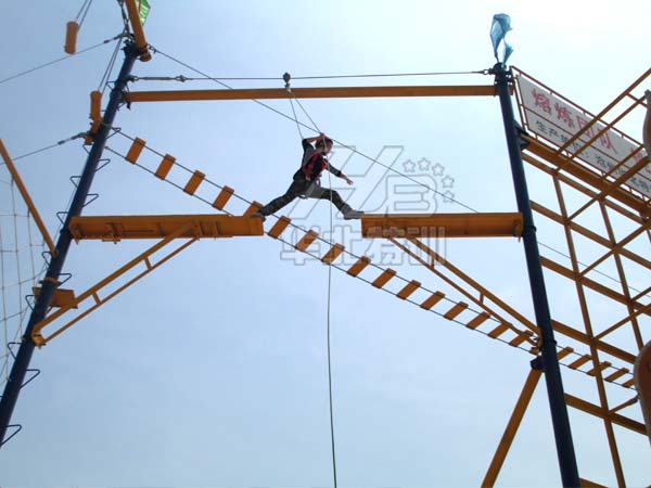 規格:占地17米×17米,由15個1米×1米×4米高的站臺組成。平臺高2米。起點和終點設有樓梯。   包含項目:獨木橋、勇往直前、圓木橋、圓木秋千、等…
